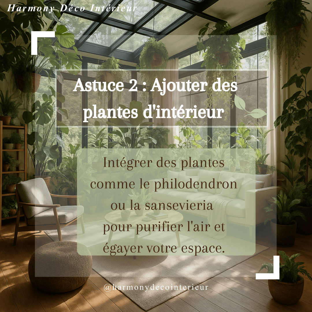 Plantes d'intérieur : Elles améliorent la qualité de l'air et ajoutent une touche de verdure.